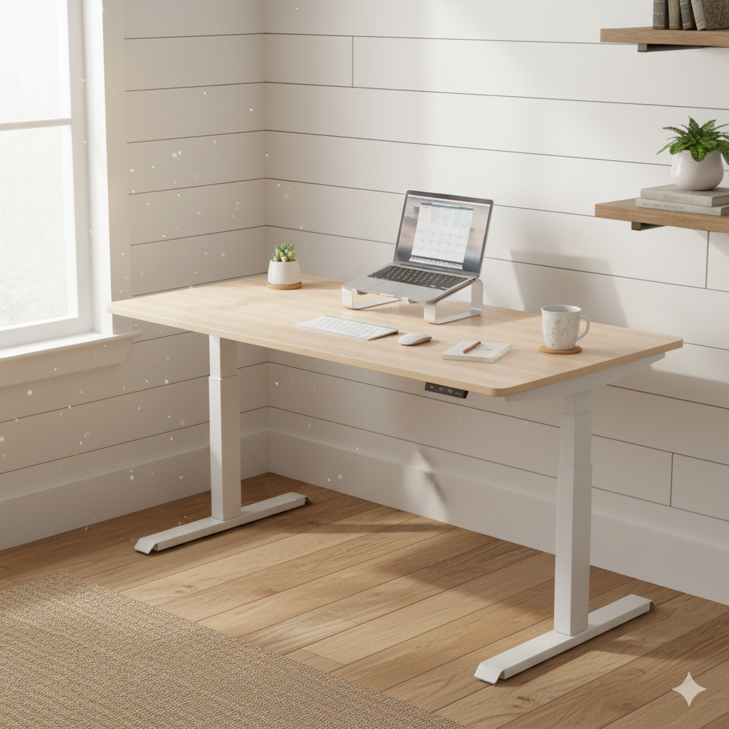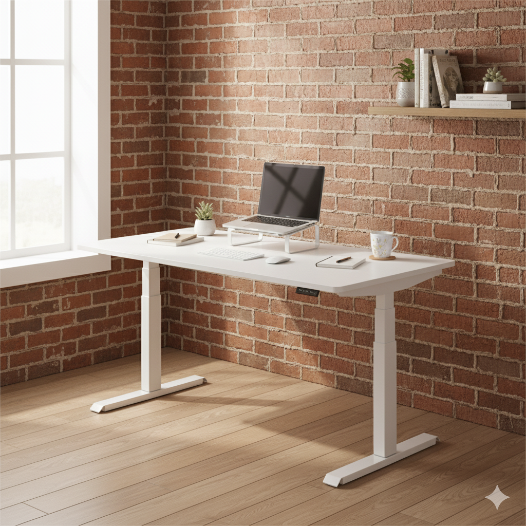 Die Tragfähigkeit von bis zu 120 kg bietet ausreichend Stabilität für Monitor-Setups, Laptops, Dokumente und Zubehör. Ein integrierter Kollisionsschutz stoppt die Bewegung automatisch, sollte ein Hindernis erkannt werden – ein wichtiges Sicherheitsmerkmal für Arbeitsplätze mit sensibler Technik.