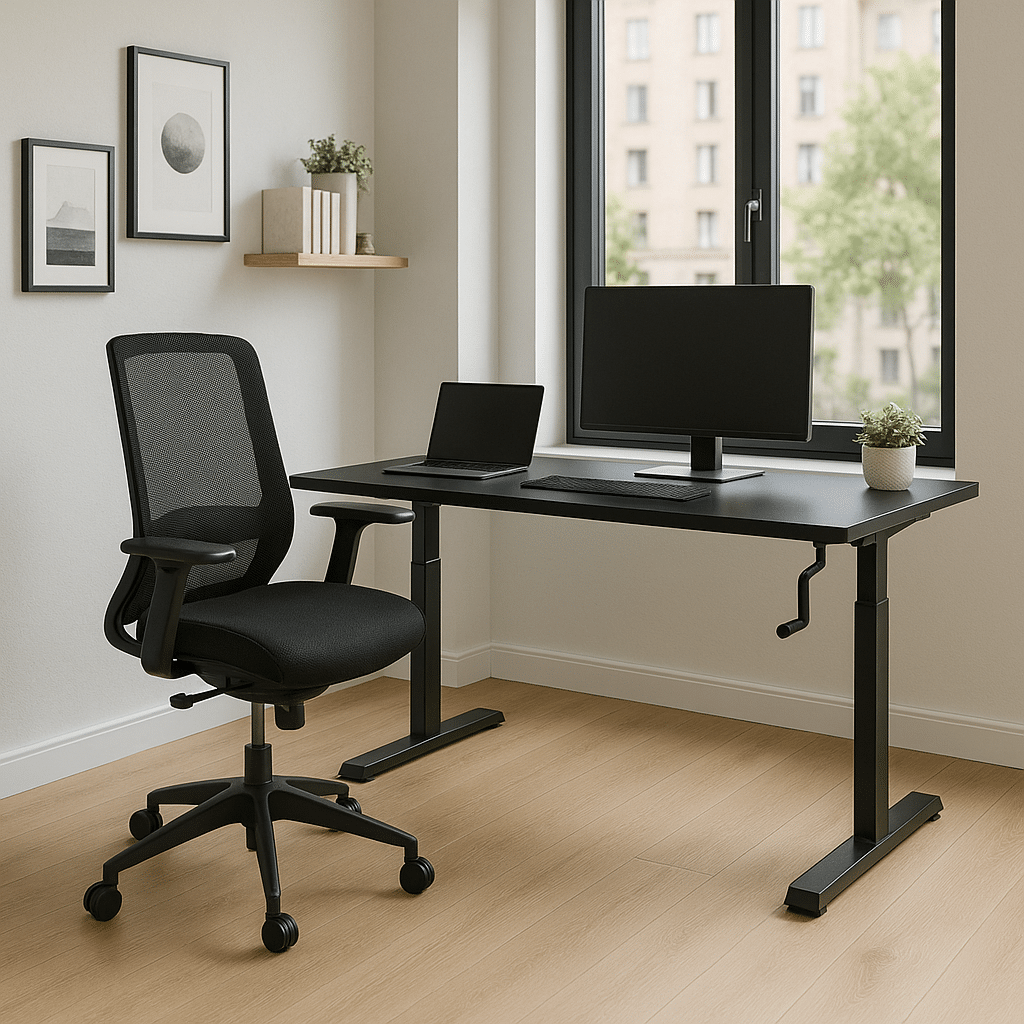 MO Casa Steh-Sitz-Schreibtisch Mo One Plus höhenverstellbar per Kurbel - 70 kg Maximalbelastung