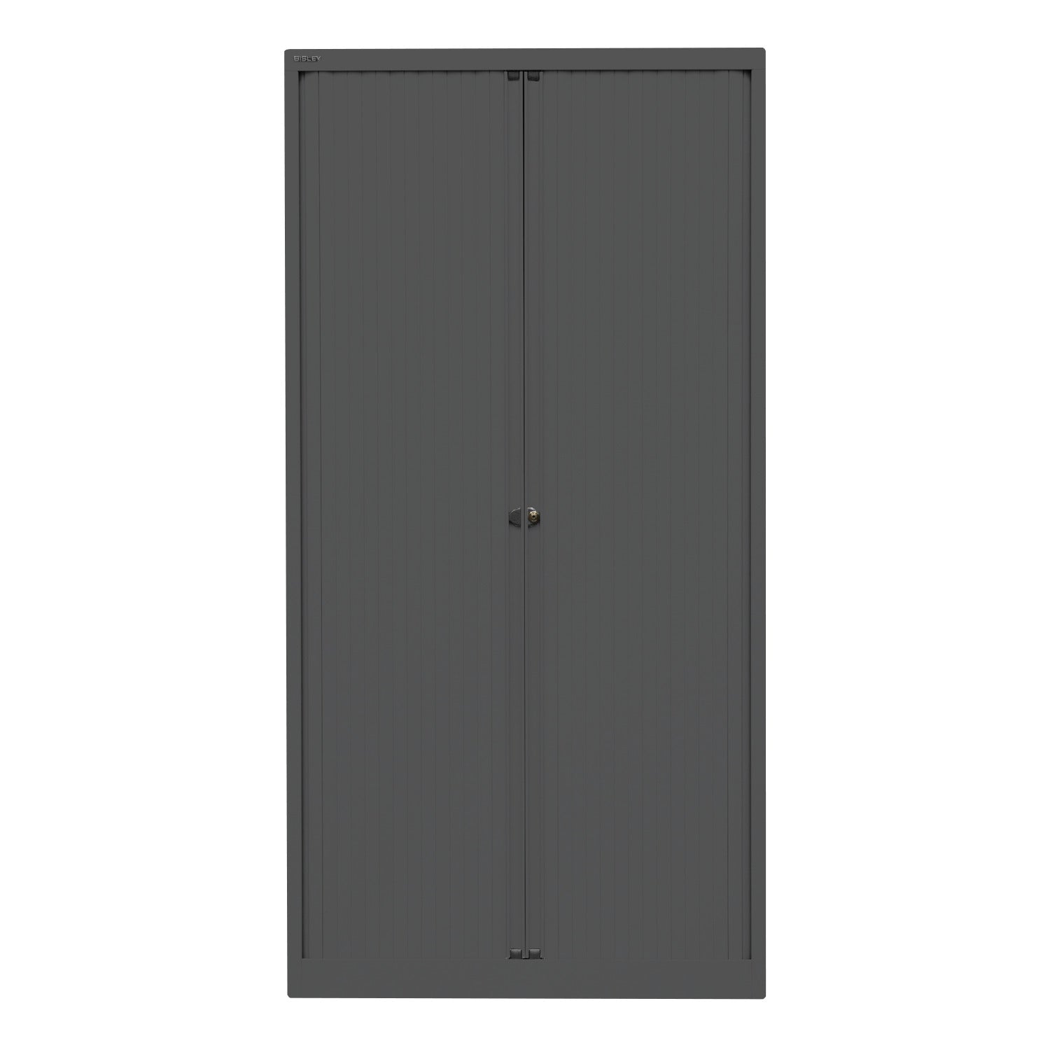 Der Rollladenschrank EuroTambour von Bisley eignet sich aufgrund seiner geringen Stelltiefe und der im Korpus verlaufenden Rollladen ideal für die Aufbewahrung auf engstem Raum. Vier schwarz lackierte Fachböden schaffen Kapazität für 5 Ordnerhöhen. Ein Schloss in der Griffleiste sorgt für die nötige Sicherheit. Der Rollladenschrank EuroTambour ist TÜV- und Quality Office-zertifiziert, die Garantie beträgt 5 Jahre. Maße: H 1980 x B 1200 x T 430 mm.