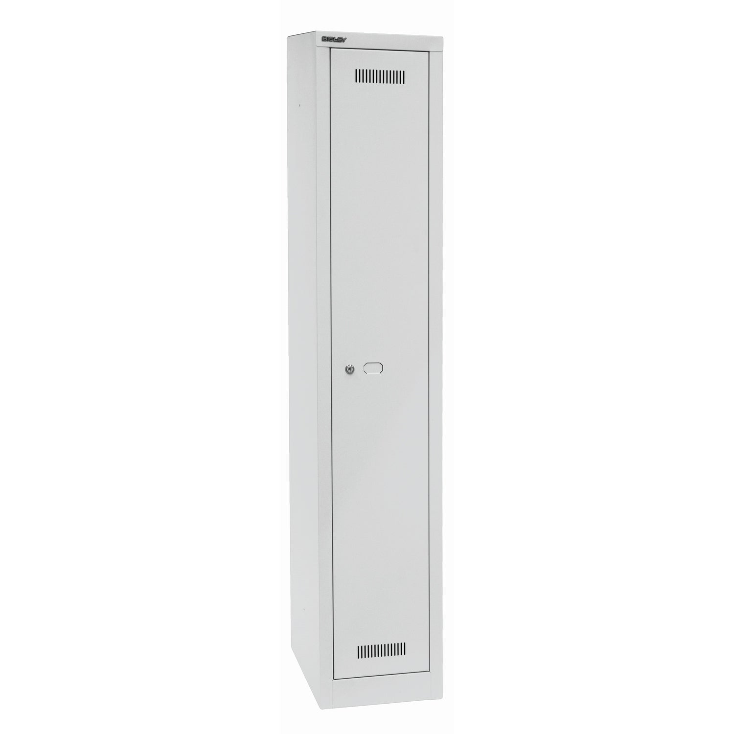Der Garderobenschrank MonoBloc™von Bisley sorgt in funktional-elegantem Design für die sichere Aufbewahrung persönlicher Gegenstände sowohl im beruflich-gewerblichen als auch im privaten und öffentlichen Umfeld. Die Türen der zwei 248 mm breiten Abteile sind mit Etikettenhaltern, Belüftungsschlitzen und einem Zylinderschloss mit 2 Schlüsseln ausgestattet. Ein Hutboden mit Kleiderstange und 3 verchromten verschiebbaren Haken pro Abteil bieten Platz für Kleidung und persönliche Gegenstände. Auf den Türinnenseiten befinden sich zwei weitere Haken. Die Garantie beträgt 5 Jahre, die Schränke der MonoBloc™ Serie sind TÜV-zertifiziert. Maße: H 1700 x B 610 x T 500 mm.