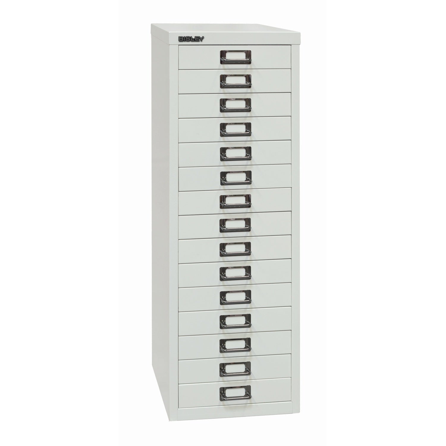 Der Bisley MultiDrawer™ - Die elegante Lösung für Platzsparer. Der Schubladenschrank der 29er Serie im Format DIN A4 bietet in 6 Schubladen mit einer Höhe von 87 mm Platz für Ihre Unterlagen. Chrombeschichtete Etikettenhalter und Griffe auf allen Schubladen prägen das beliebte Design der MultiDrawer™. Die Garantie beträgt 5 Jahre. Maße: H 590 x B 279 x T 380 mm.